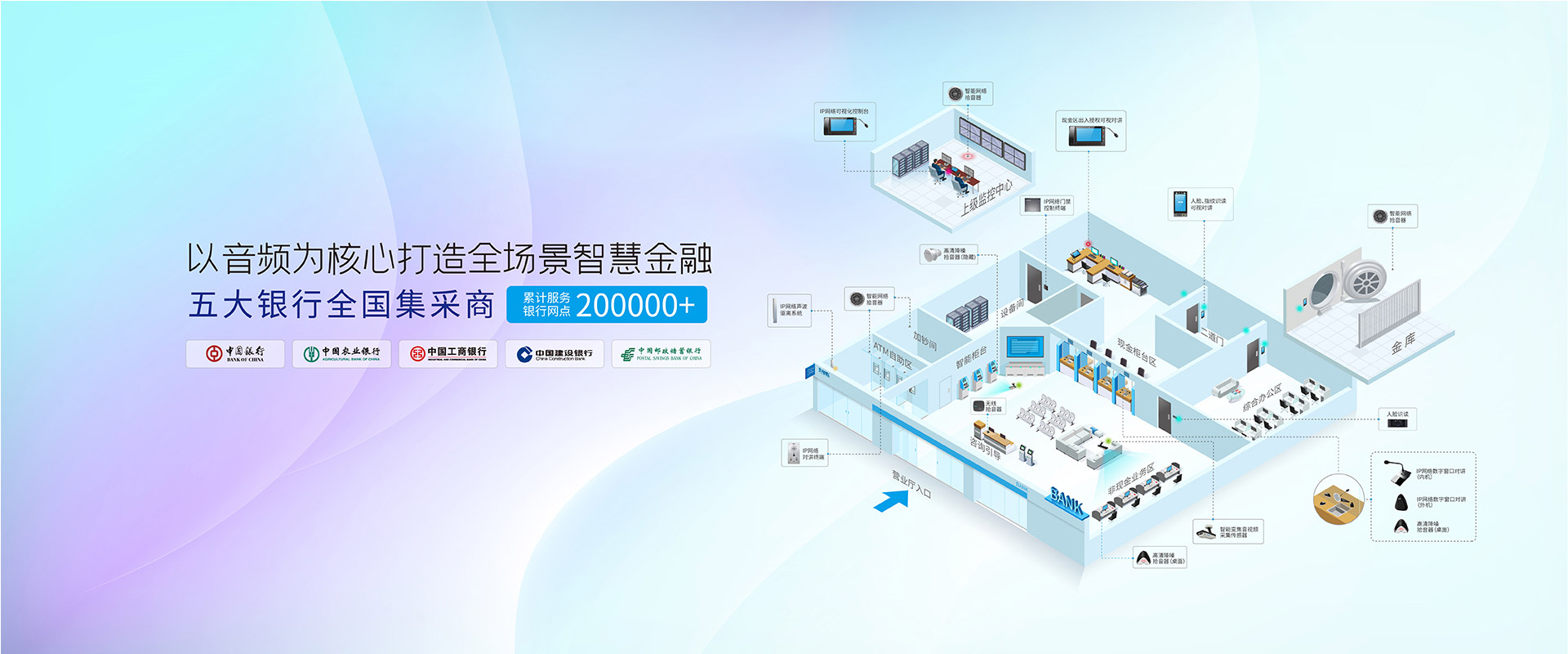 中國農業銀行作為“中國五大銀行”之一的國有商業銀行,是中國金融體系的重要組成部分。DB真人旗艦是中國農業銀行的總行集采指定供應商,為全國多個銀行網點提供高集成度、高穩定性且功能豐富的智能化可視對講系統,主要包括窗口對講和ATM機可視對講,切實提高銀行安防工作水平,保障銀行安全。